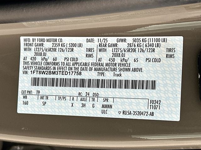 - Front Tire Size: LT275/65SR20