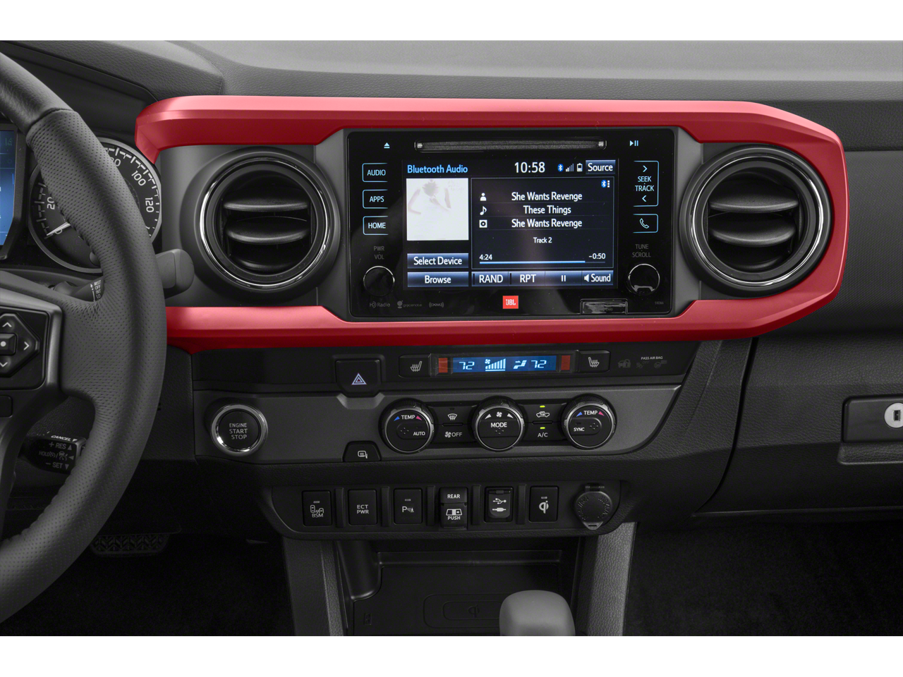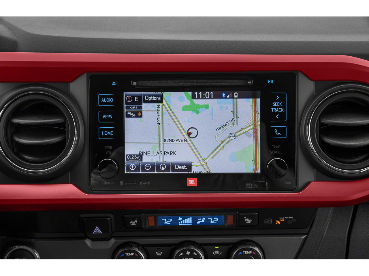 - Radio: Entune Premium w/AM/FM/CD/Nav/App Suite -inc: 6 speakers, 7" high-resolution touch-screen display w/split screen, auxiliary port, USB media port, Siri eyes free, advanced voice recognition, Bluetooth hands-free phone capability, phone book access and music streaming, cache radio, HD Radio, HD predictive traffic and doppler weather overlay and SiriusXM satellite radio w/complimentary SiriusXM All Access 90-day trial subscription included, Entune App Suite, Destination Search, iHeartRadio, MovieTickets.com, OpenTable, Pandora, Yelp, Facebook Places and Slacker Radio