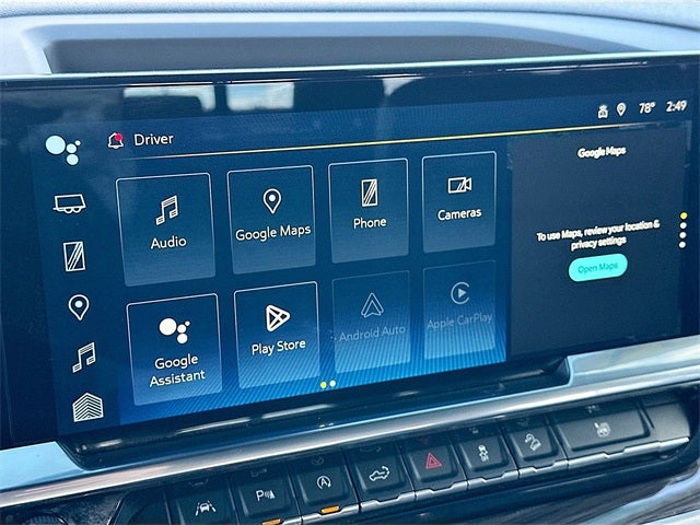- Audio system, Chevrolet Infotainment 3 Premium system with Google built-in compatibility (select service plan required, terms and limitations apply) including navigation capability, 13.4" diagonal HD color touchscreen, includes multi-touch display, AM/FM stereo, Bluetooth streaming audio for music and most phones; featuring Wireless Apple CarPlay and Wireless Android Auto capability for compatible phones, advanced voice recognition, in-vehicle apps, personalized profiles for infotainment and vehicle settings