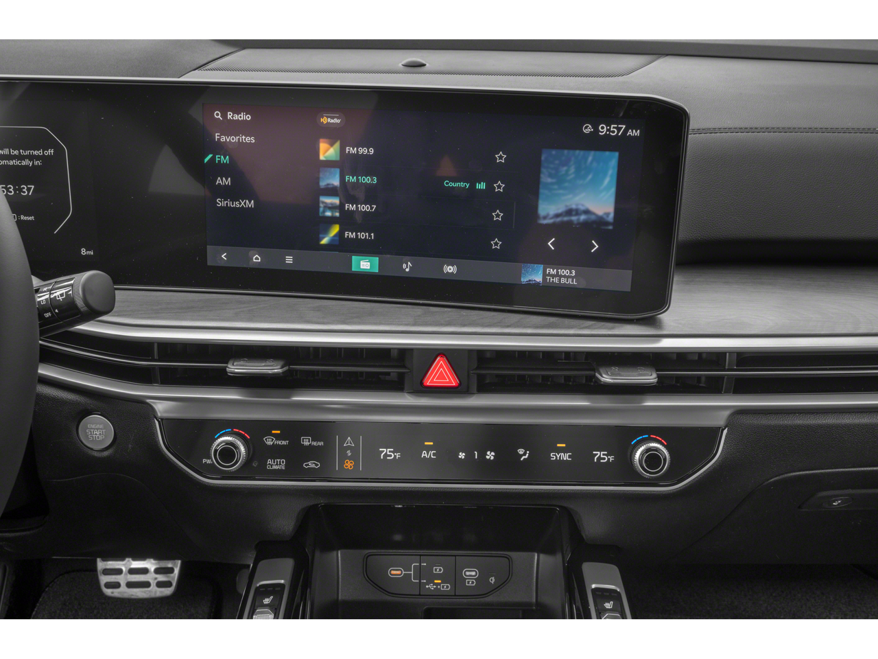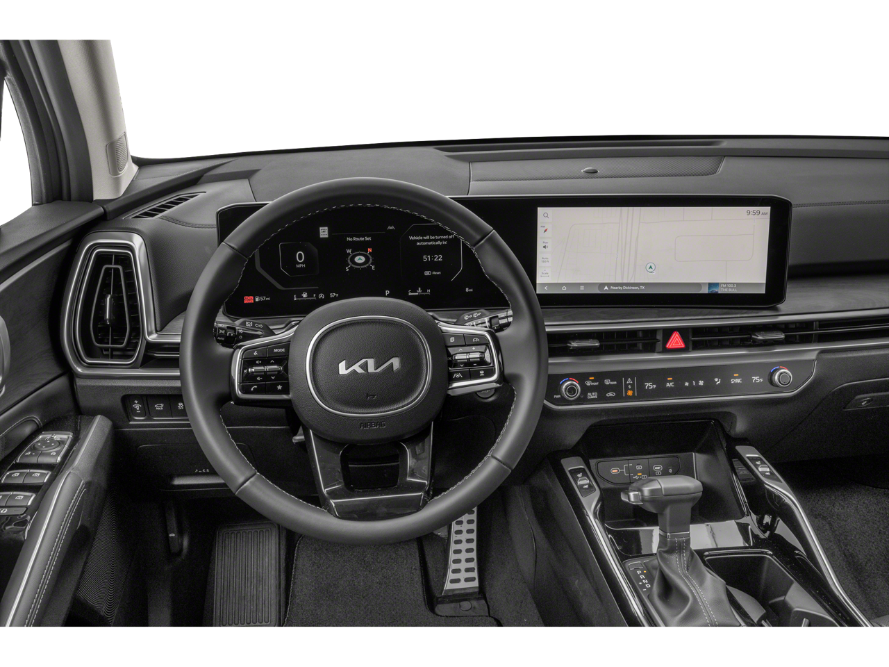 - Radio: AM/FM Standard Sound System -inc: 12.3" ccNC touchscreen, navigation, HD Radio, Bluetooth w/audio remote control, wireless Android Auto and wireless Apple CarPlay, voice recognition, Sirius XM, modem Kia Connect, Wi-Fi hot spot, Over-The-Air Updates (OTA), 6 speakers and USB